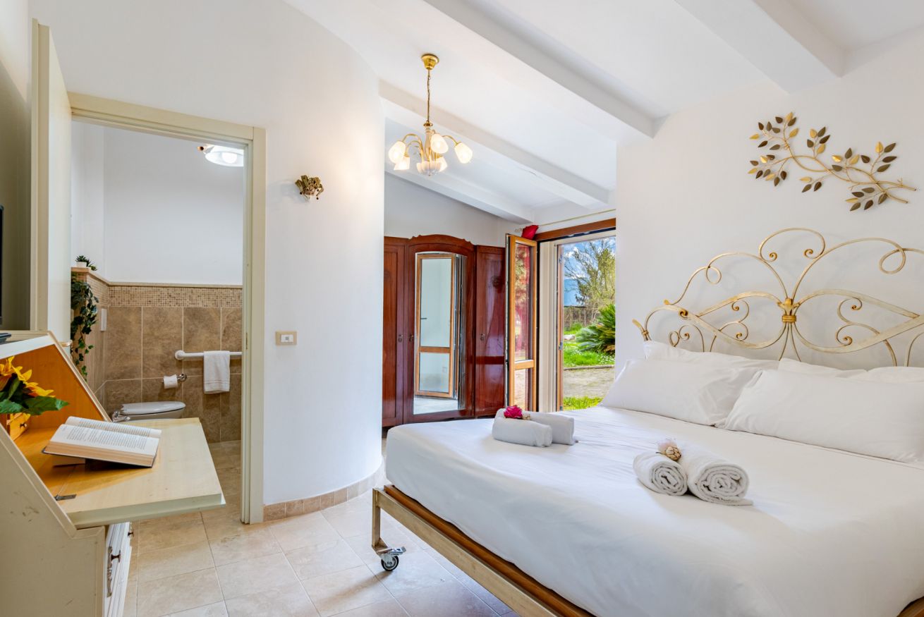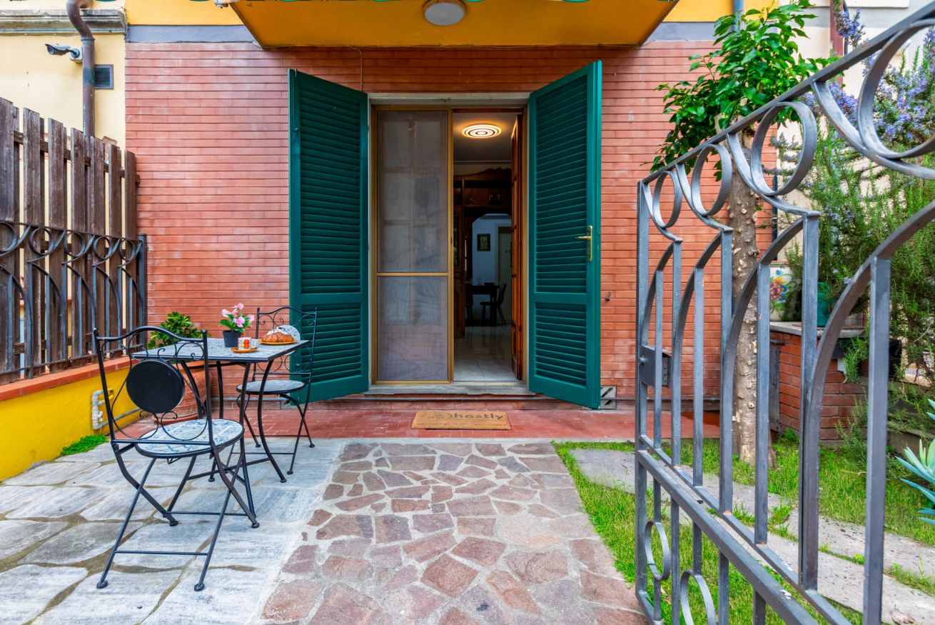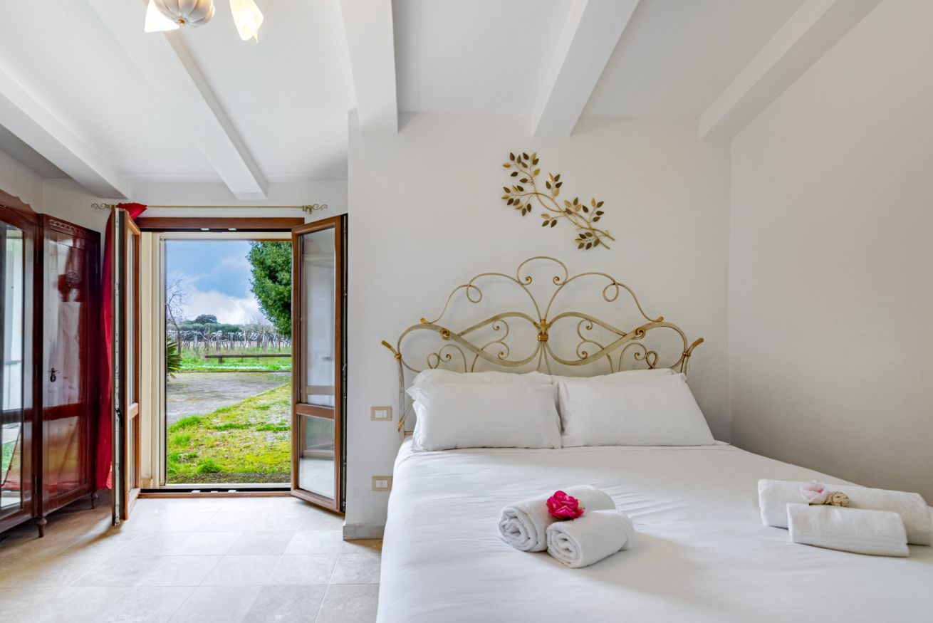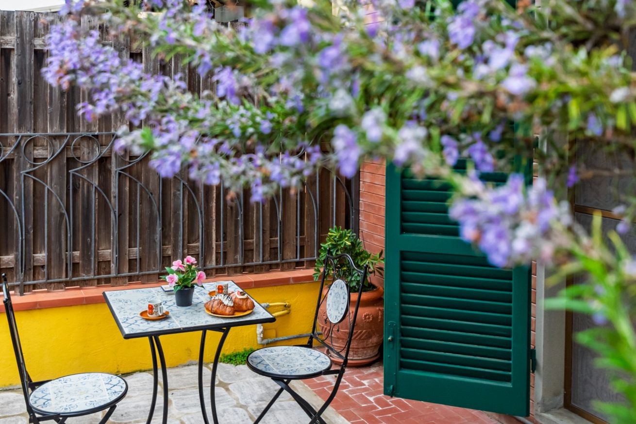 All’esterno, il giardino privato offre uno spazio perfetto per rilassarsi, fare colazione all’aperto o godersi momenti di tranquillità dopo una giornata di visite.