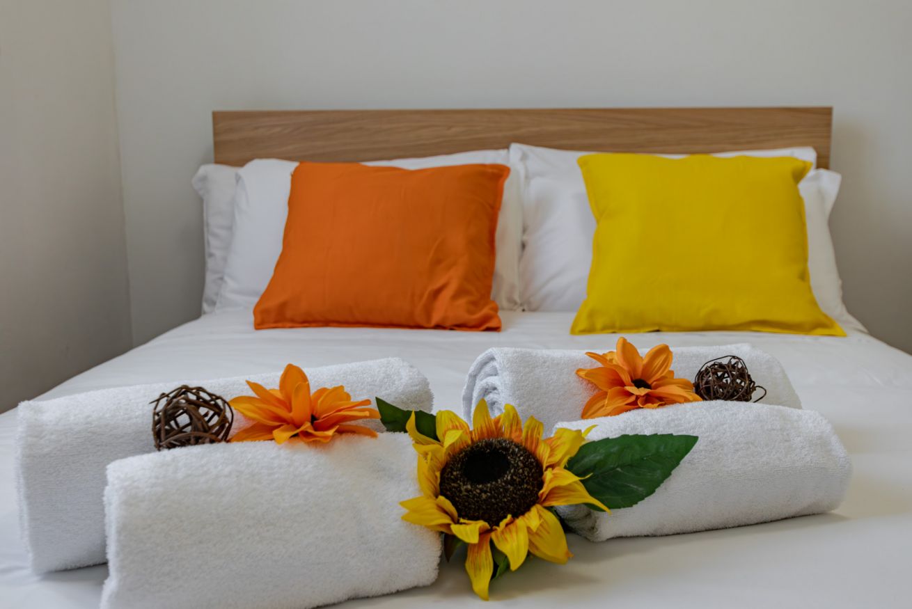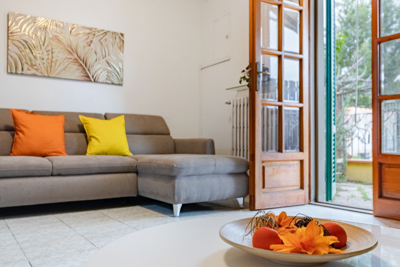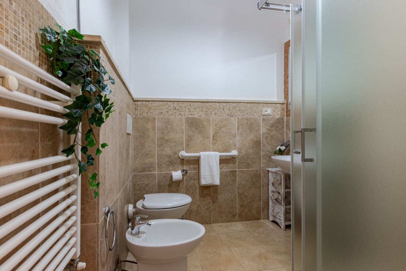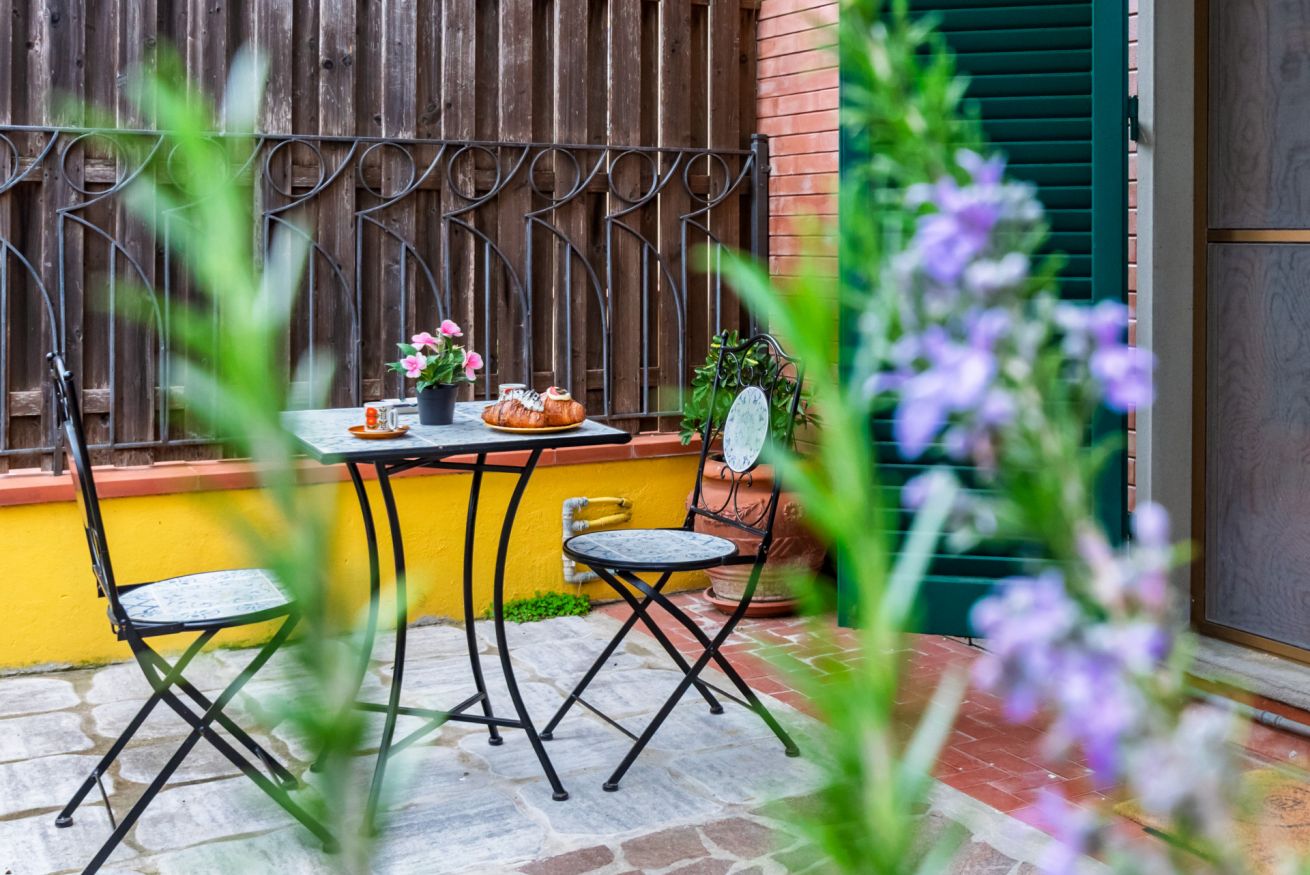 All’esterno, il giardino privato offre uno spazio perfetto per rilassarsi, fare colazione all’aperto o godersi momenti di tranquillità dopo una giornata di visite.