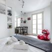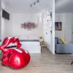 - Ampio soggiorno open-space con arredi di design e divano letto